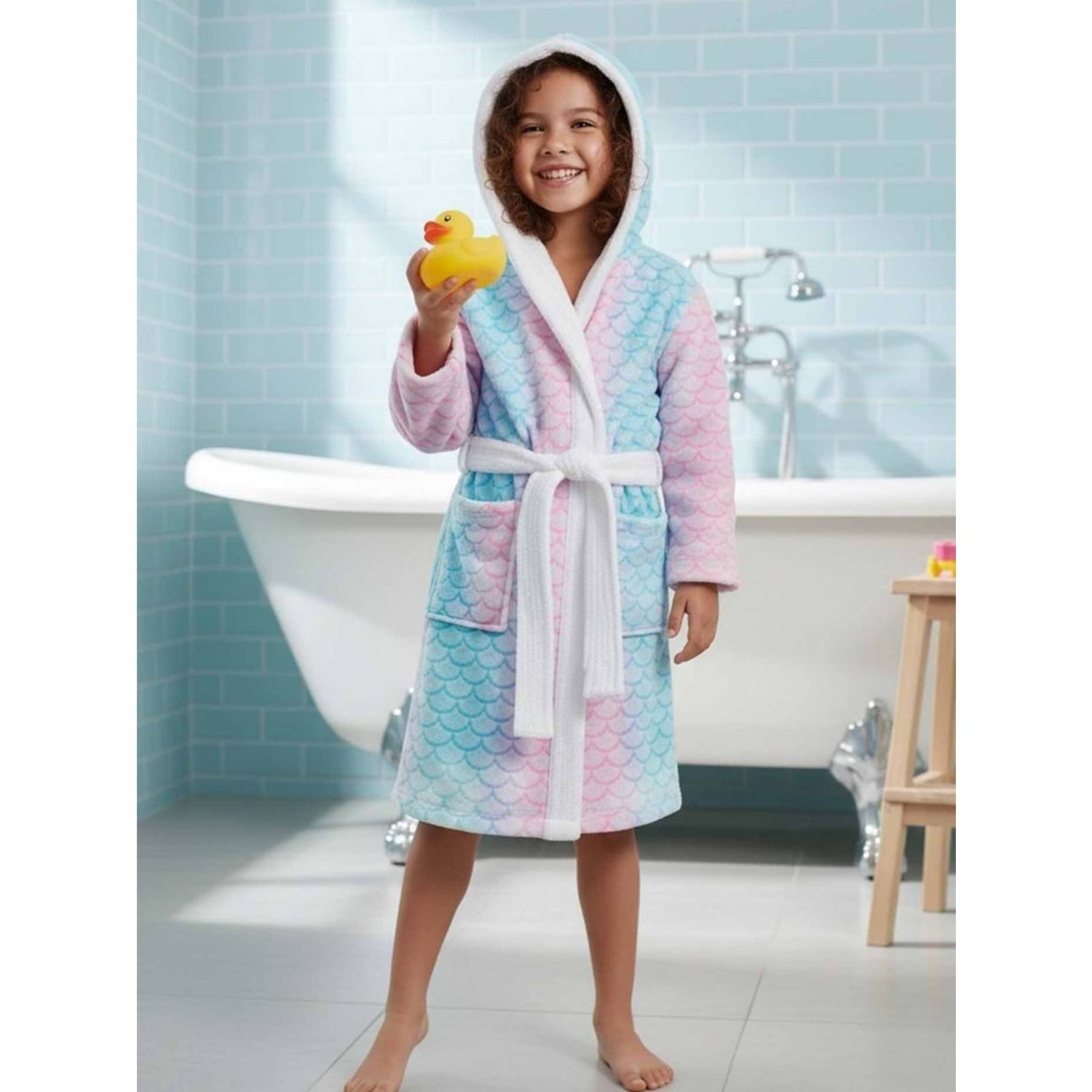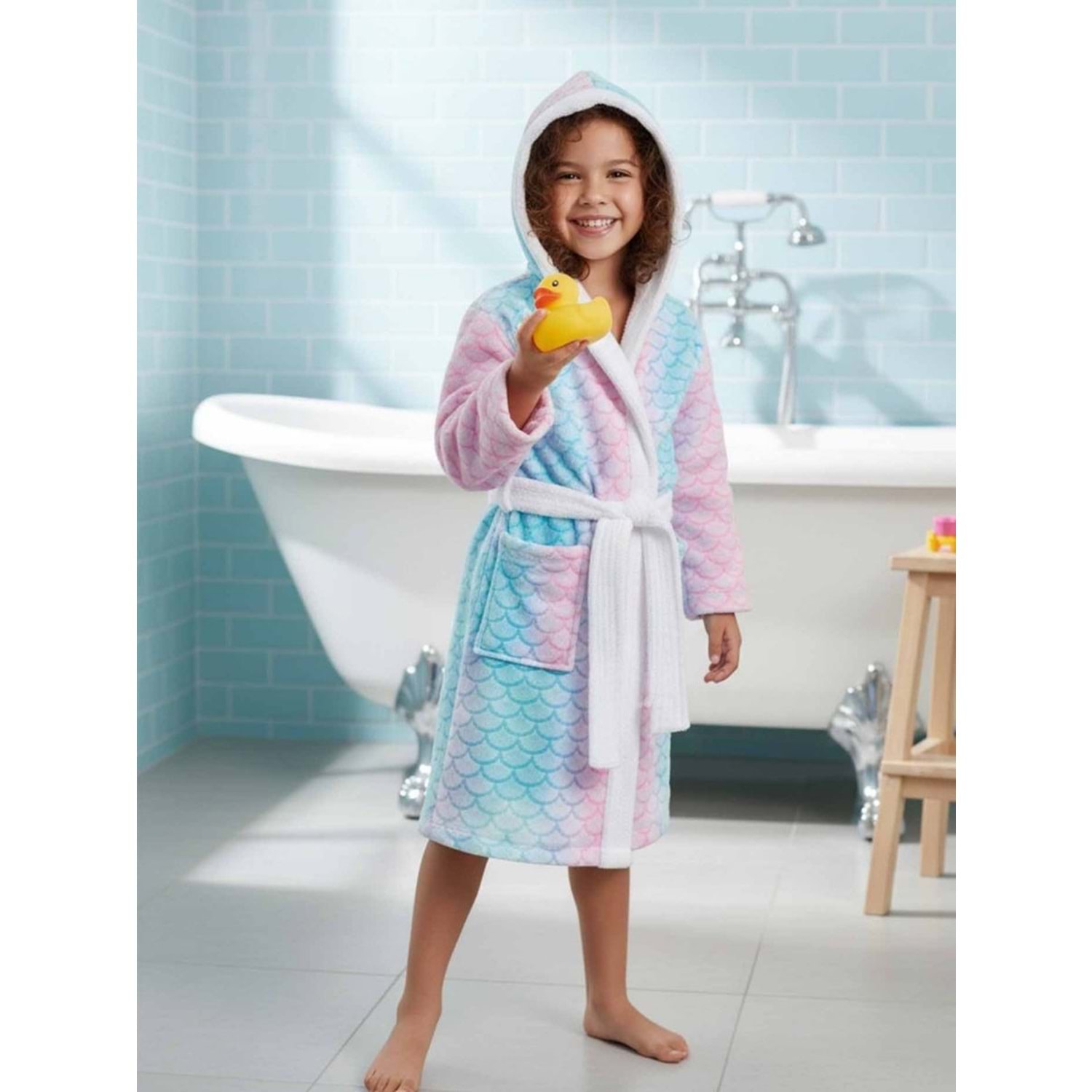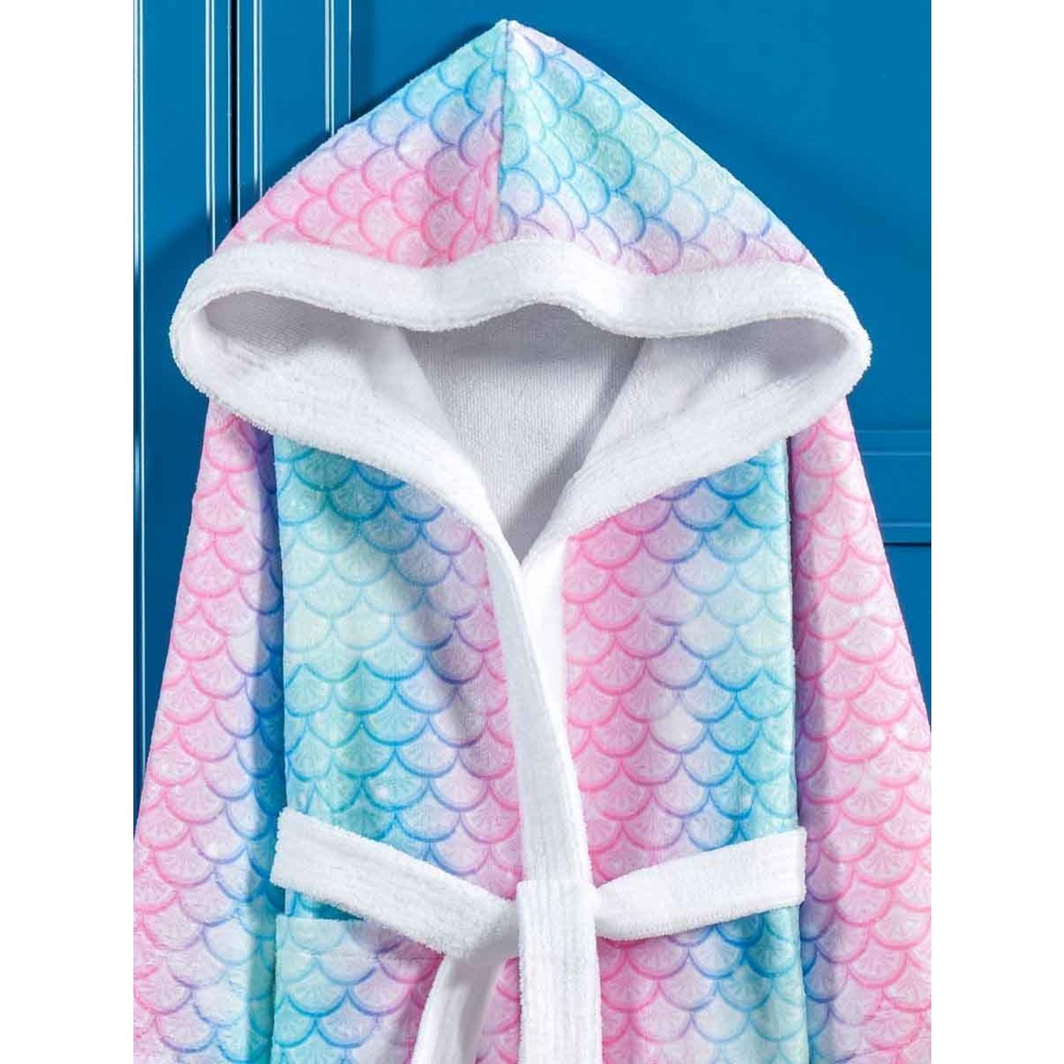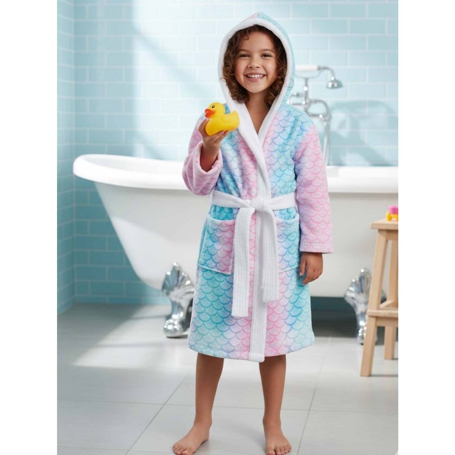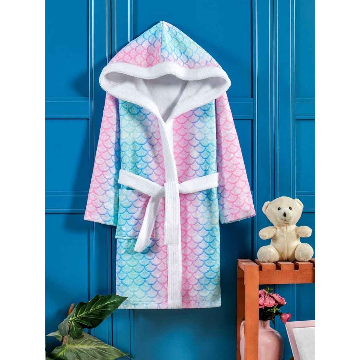 Balık Pulu Dijital Baskılı Çocuk Bornozu