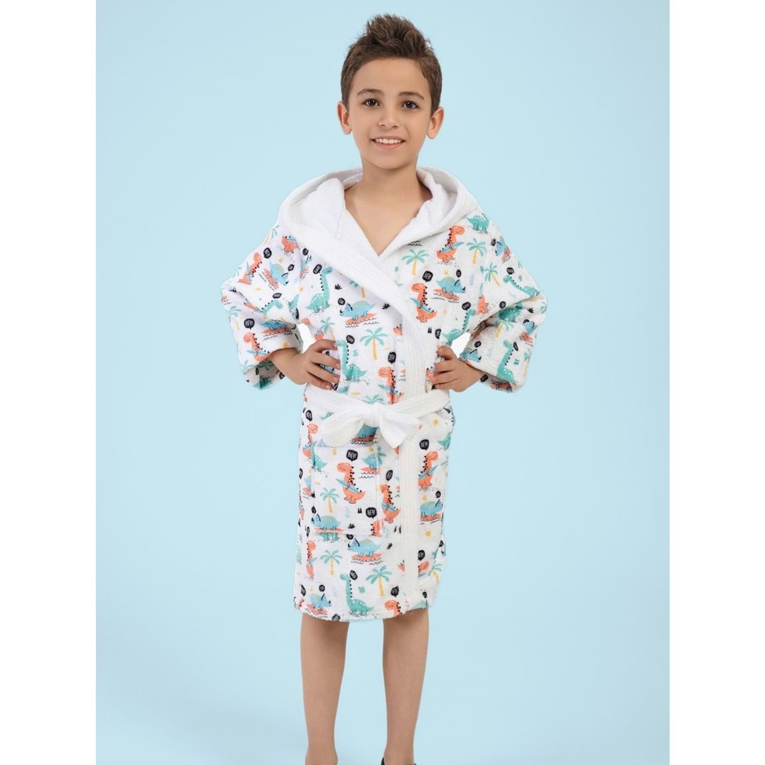 Dino Dijital Baskılı Çocuk Bornozu