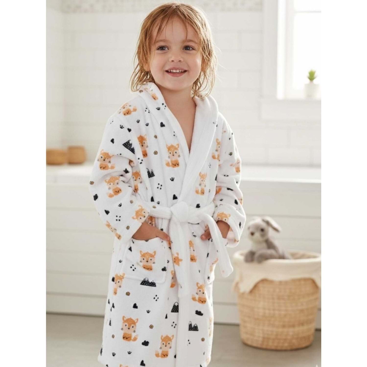 Forest Fox Dijital Baskılı Çocuk Bornozu
