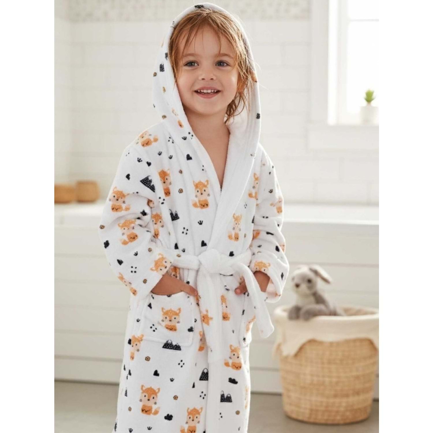 Forest Fox Dijital Baskılı Çocuk Bornozu