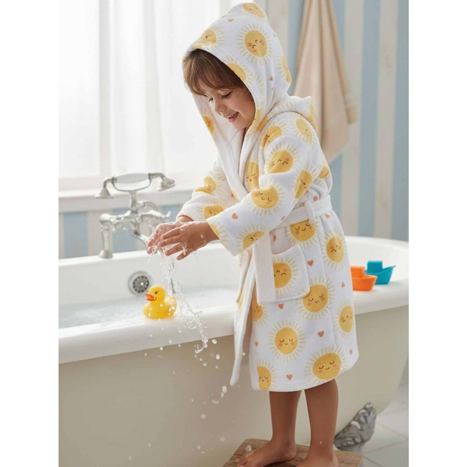 Uzay Desen Dijital Baskılı Çocuk Bornozu