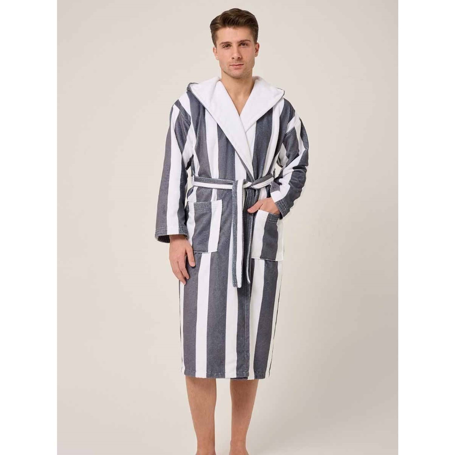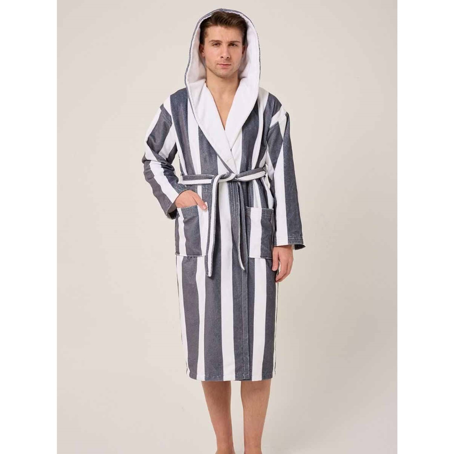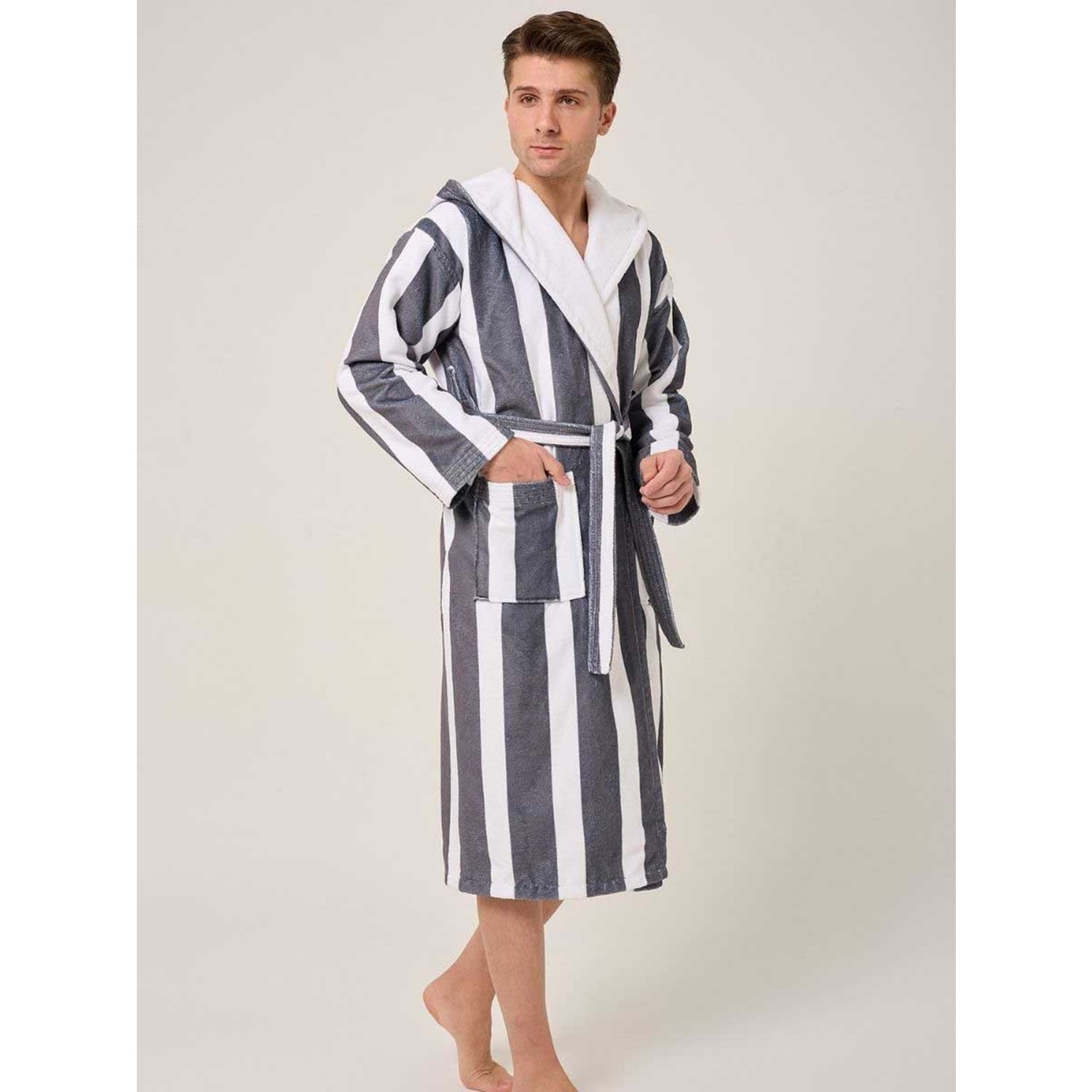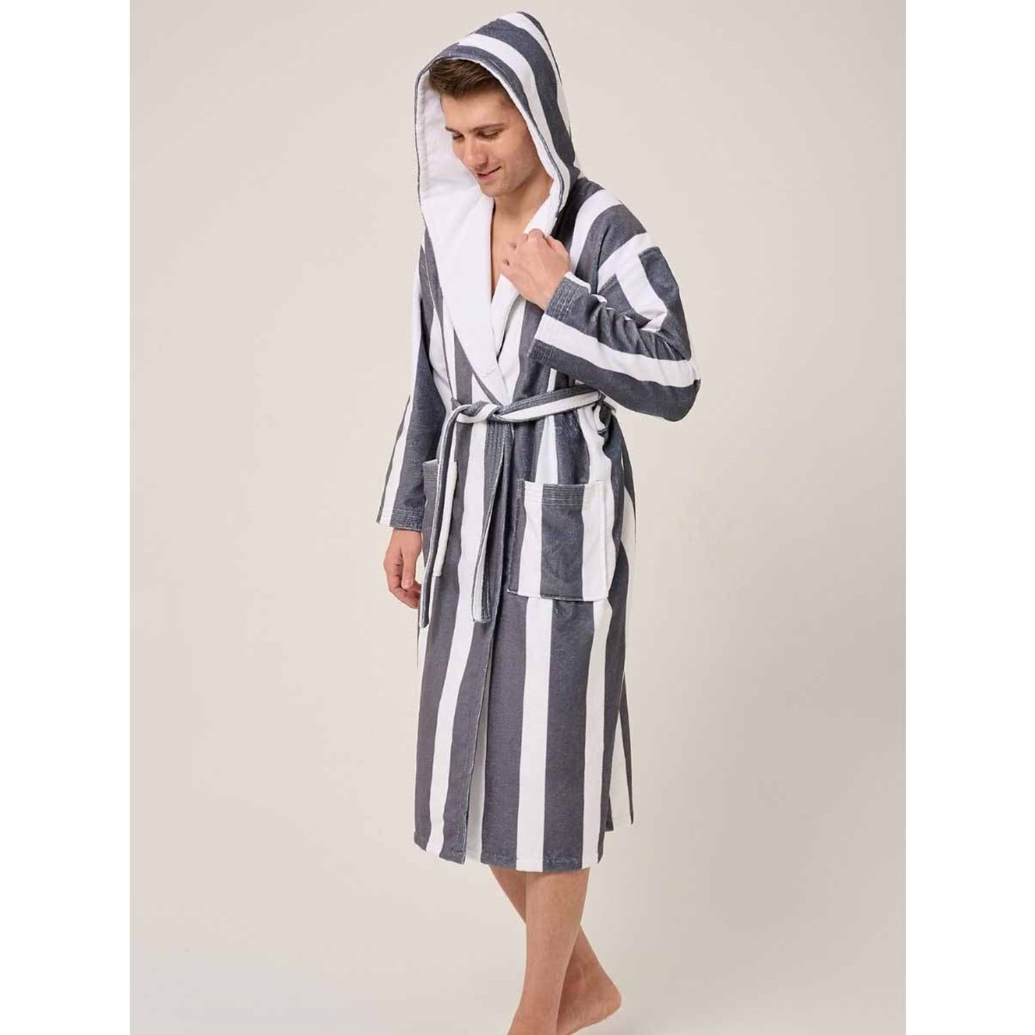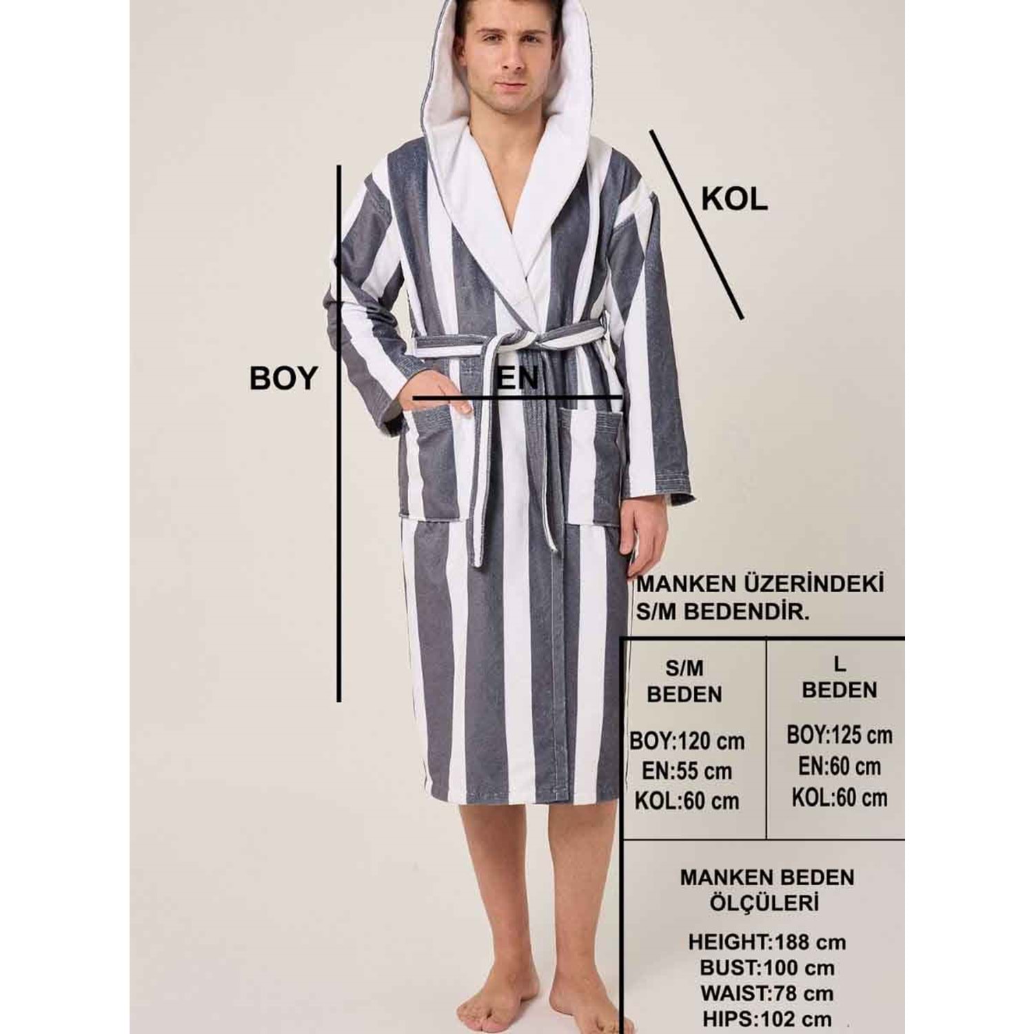Çizgili Desenli Dijital Baskılı Kapüşonlu Bornoz ANTRASİT