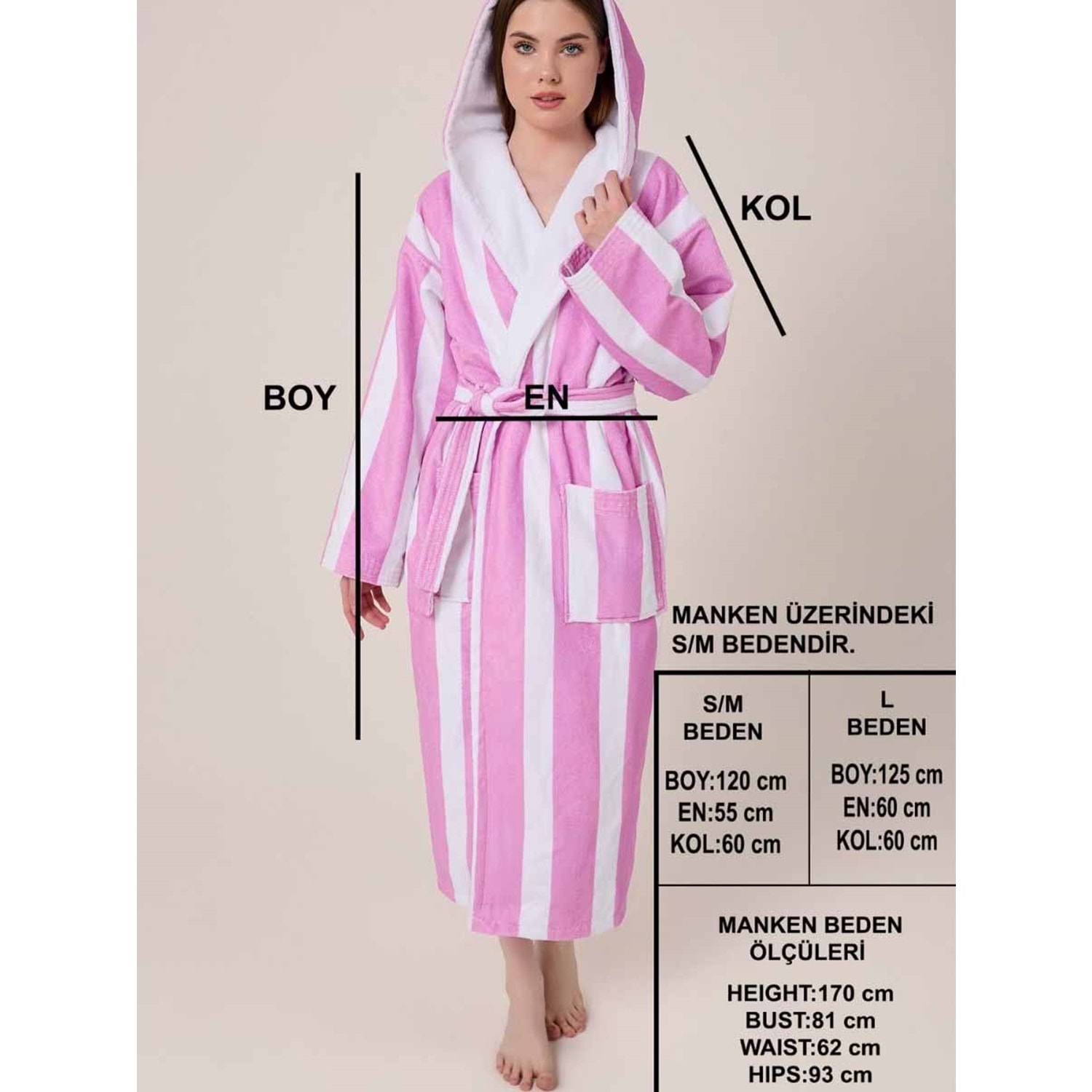 VevienHome Özel Tasarım - Ekstra Yumuşak Kadife Jakarlı %100 Pamuk Bornoz PUDRA L Beden