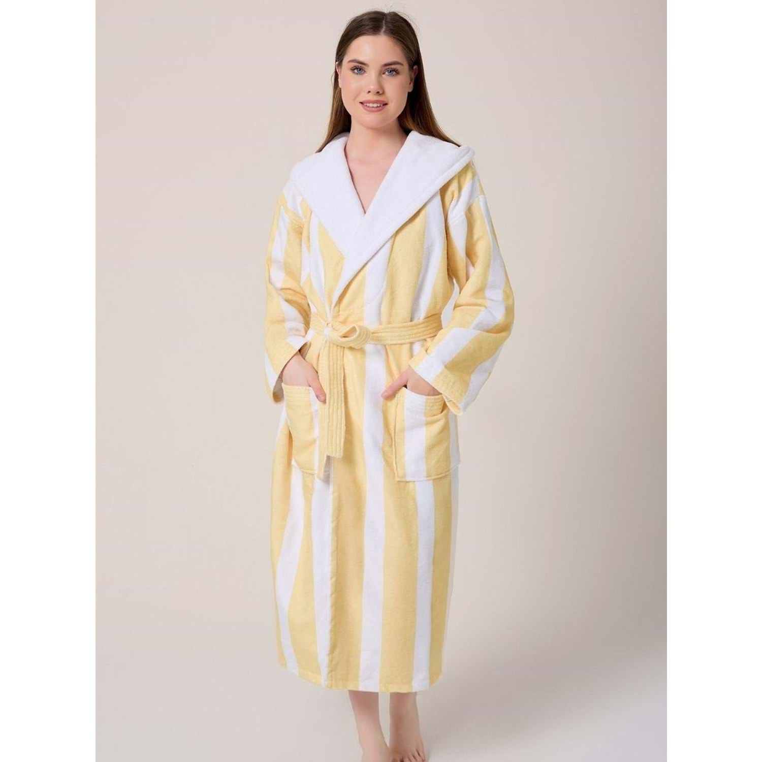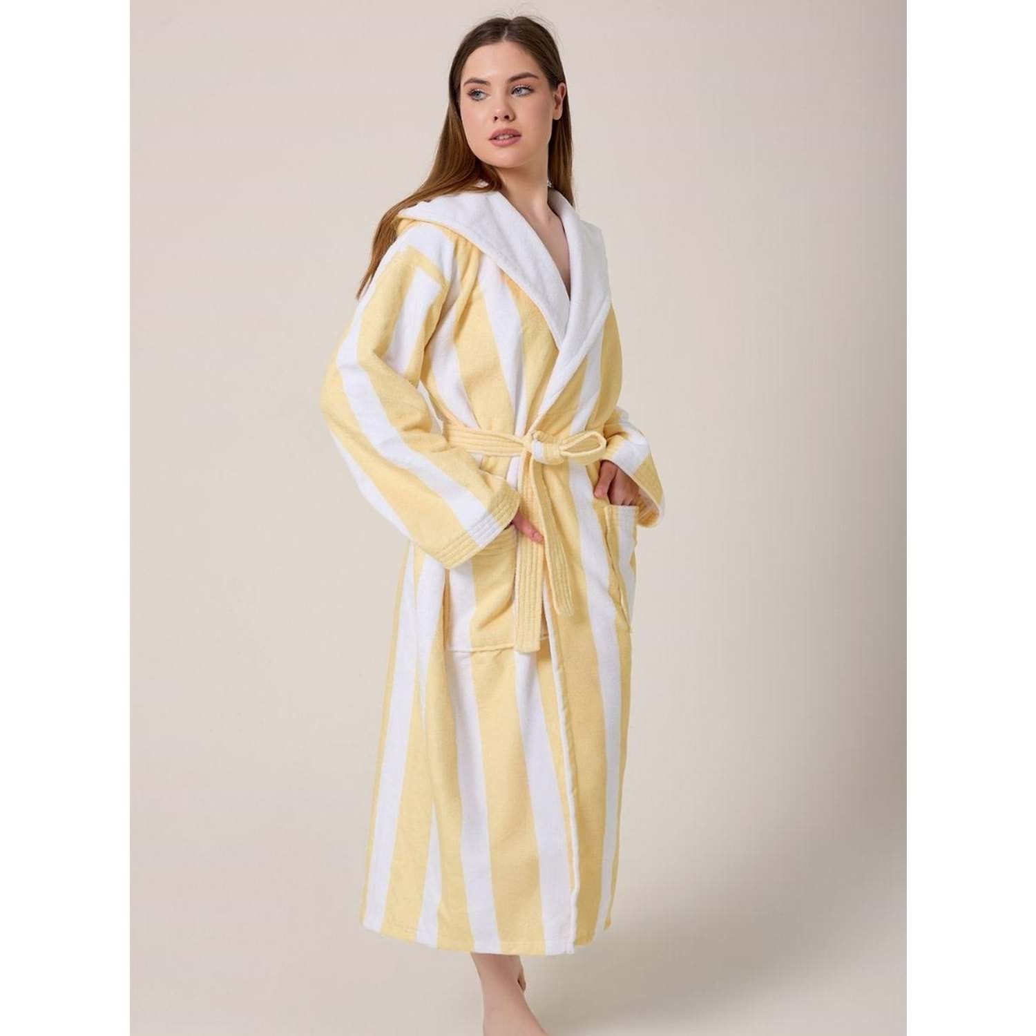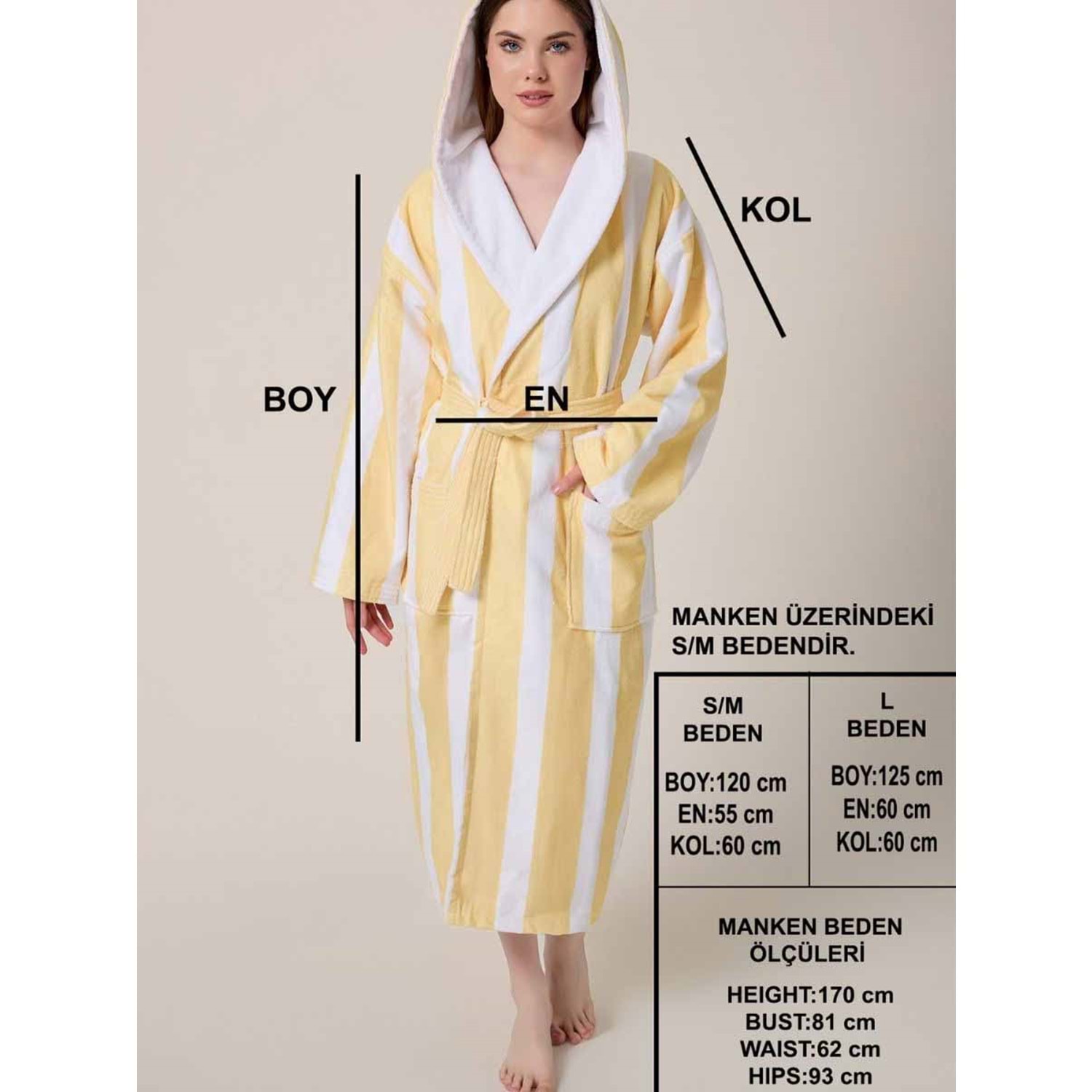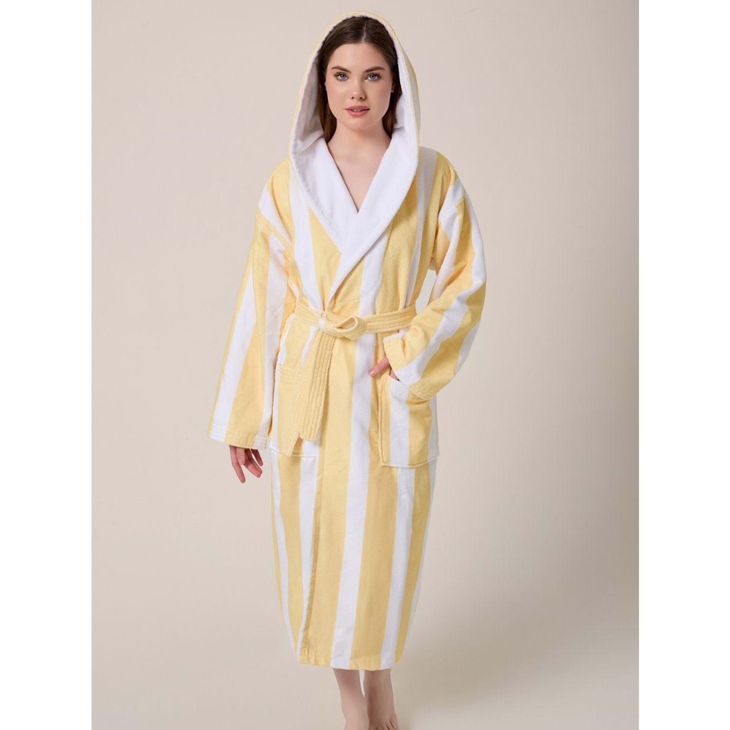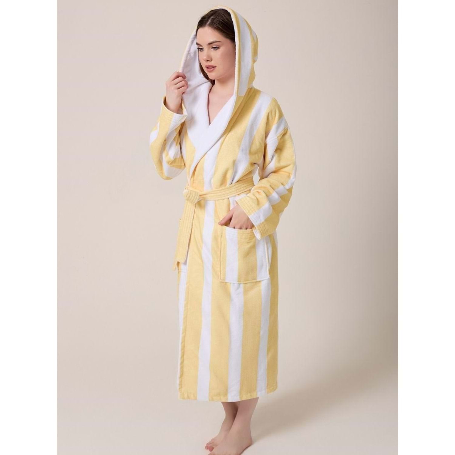 Çizgili Desenli Dijital Baskılı Kapüşonlu Bornoz SARI