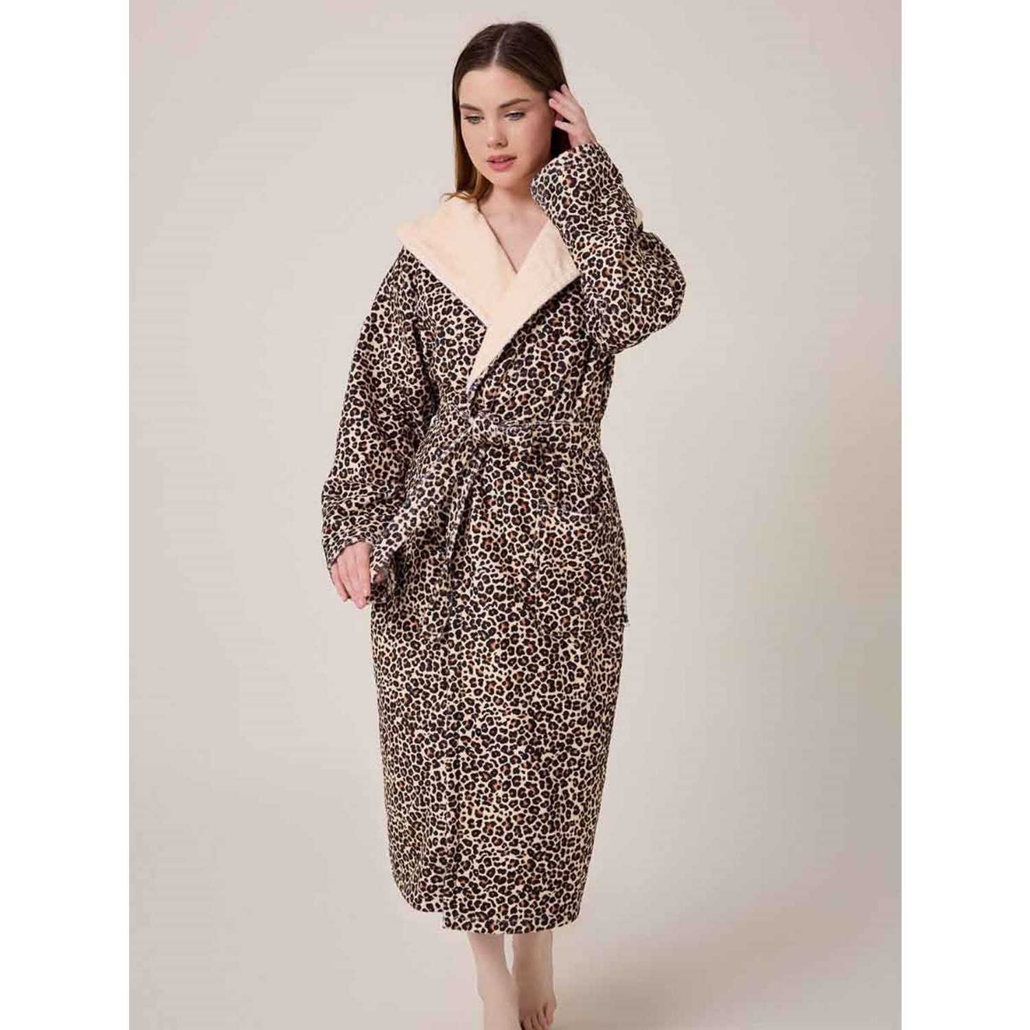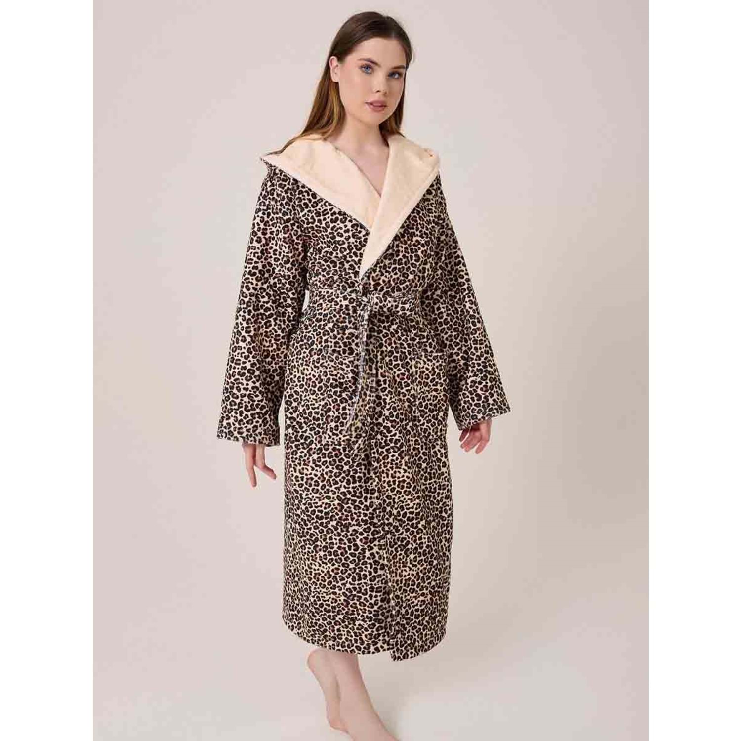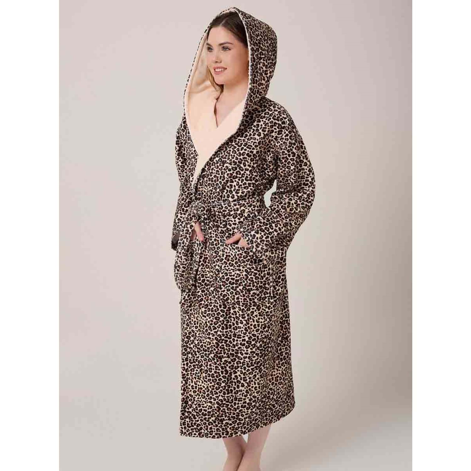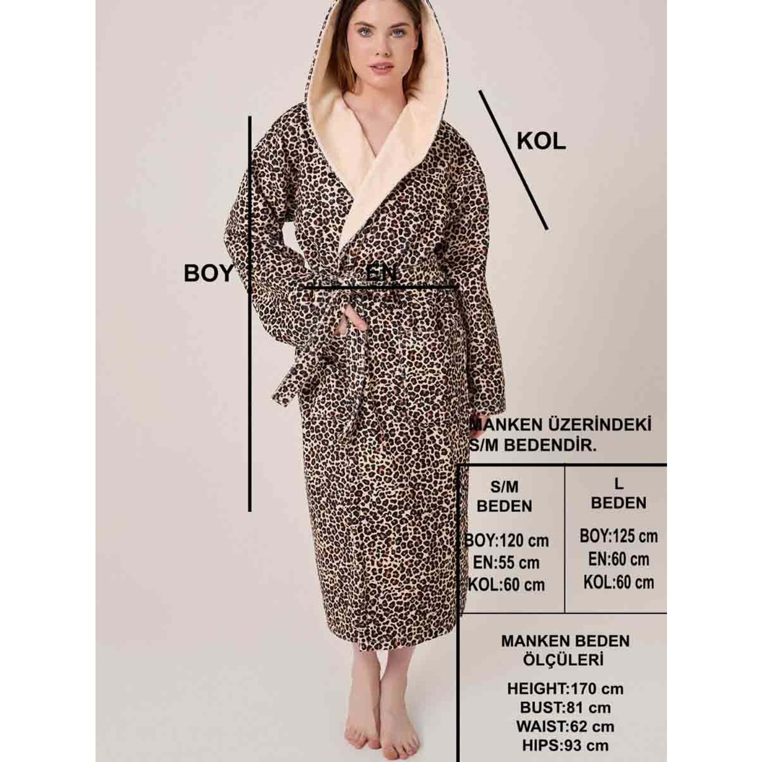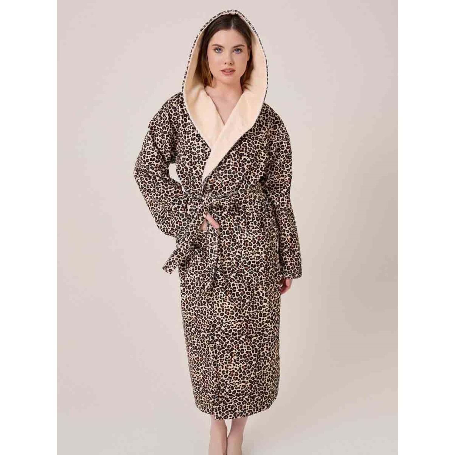 Leopar Desenli Dijital Baskılı Kapüşonlu Bornoz
