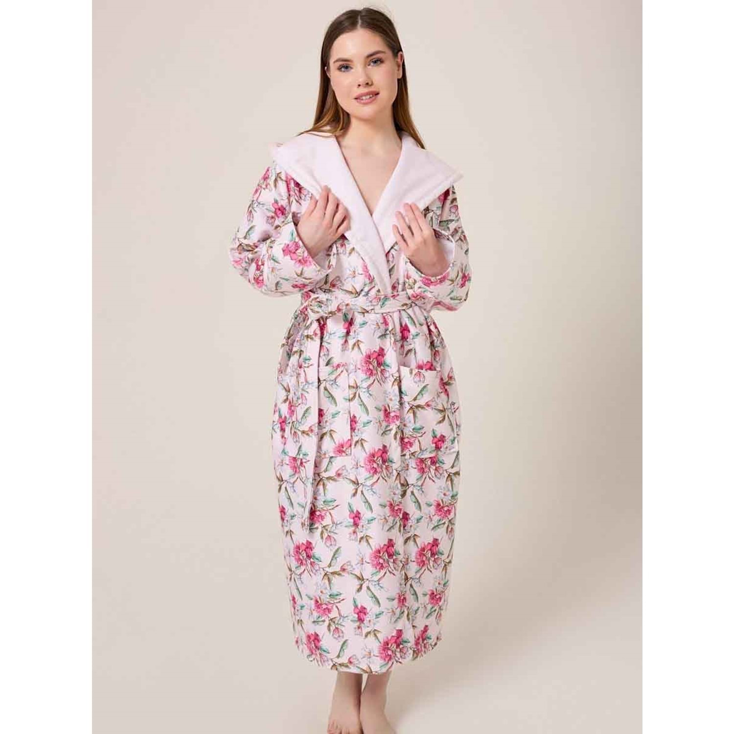 Peonia Fiore Desenli Dijital Baskılı Kapüşonlu Bornoz