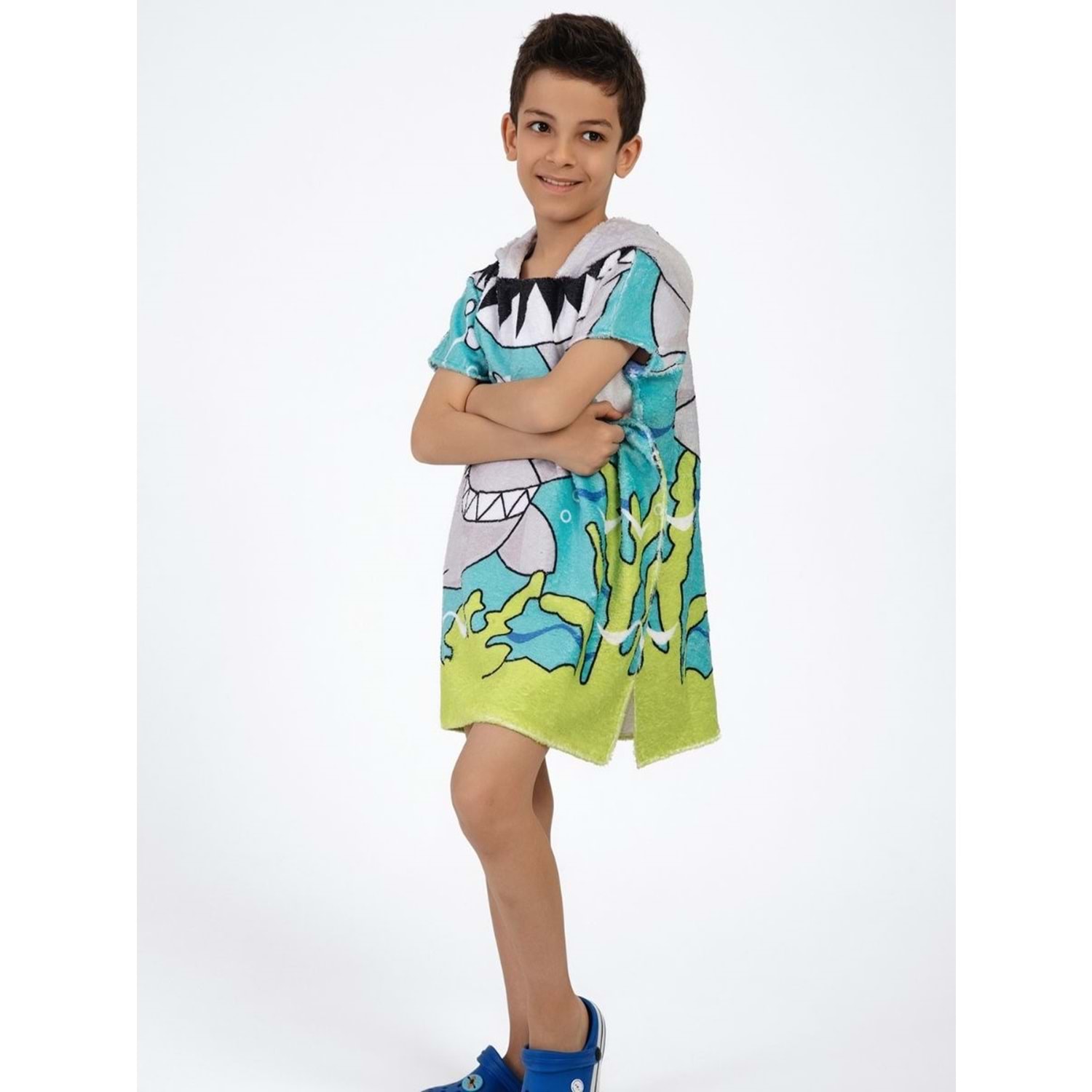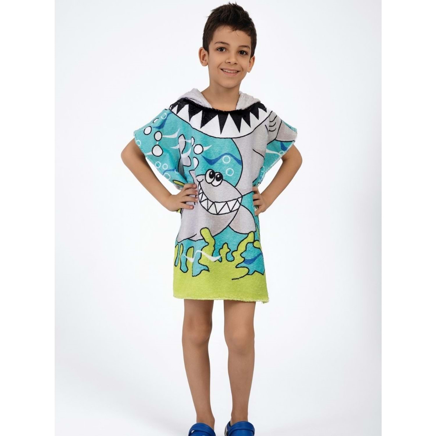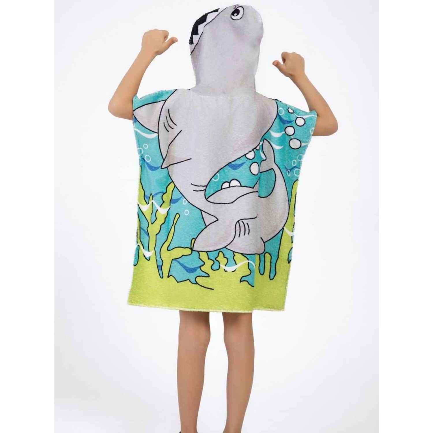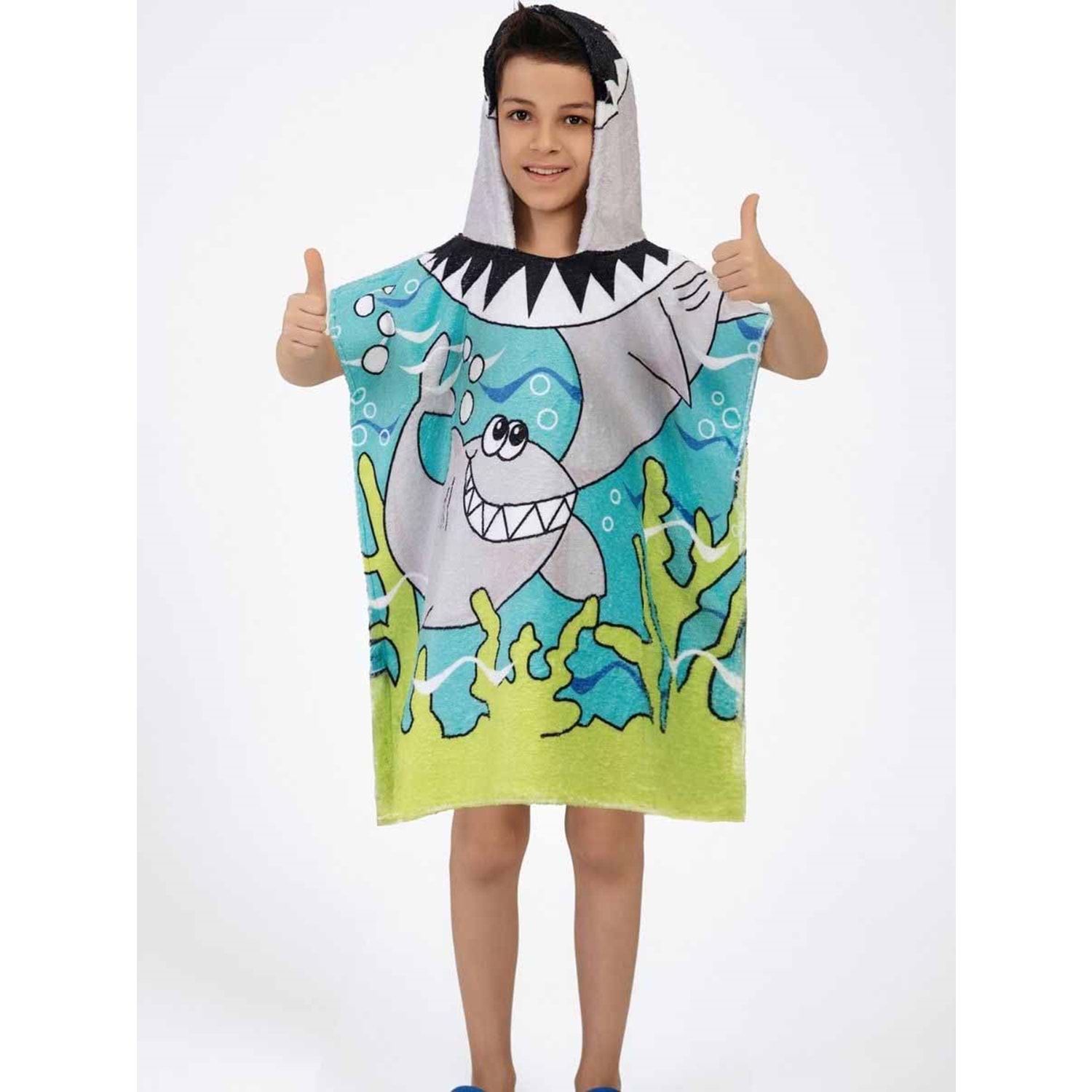 Köpek Balığı Desen Çocuk Panço Plaj Havlusu