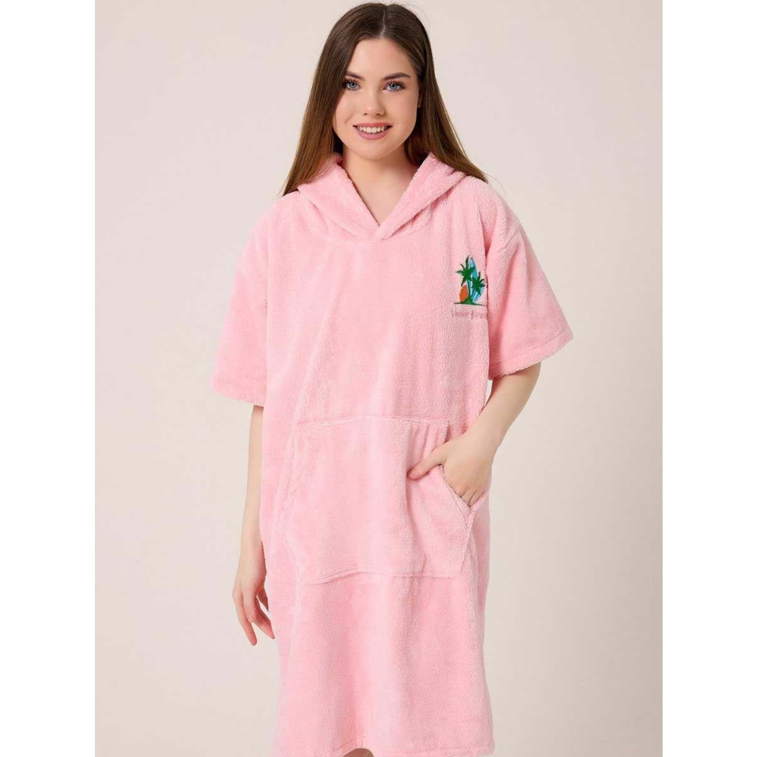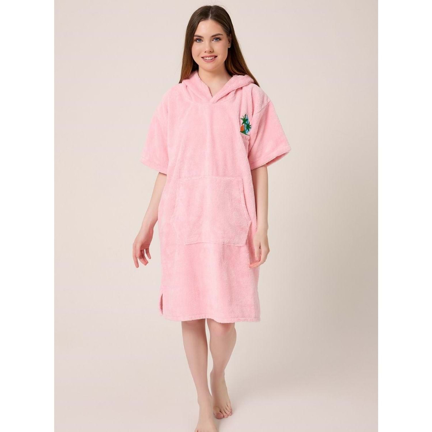 Palmiye Sörf Nakışlı Yetişkin Sörf Yazlık Panço Kapüşonlu Plaj Havlusu PUDRA