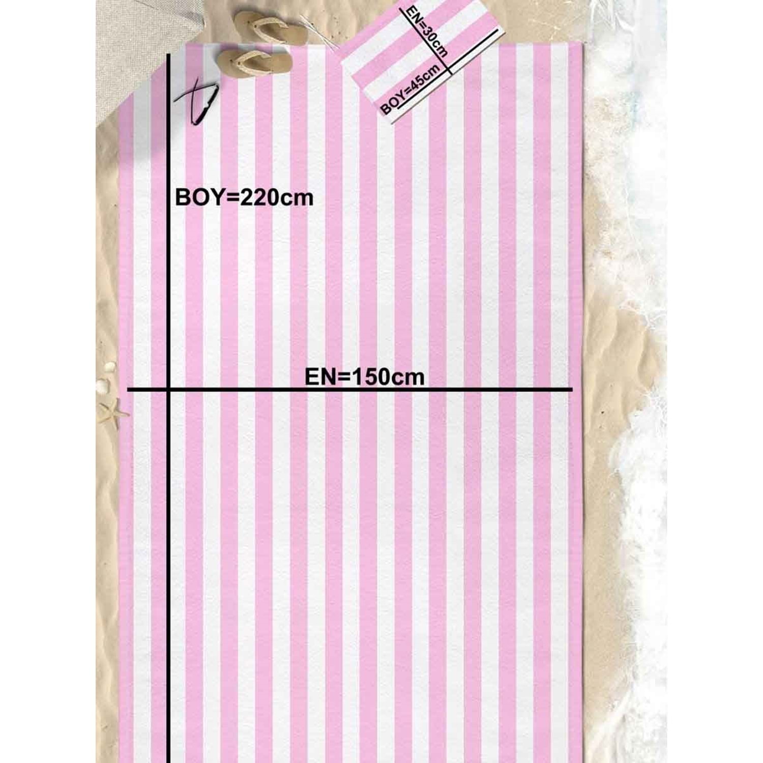 Pembe Çizgili Dijital Baskılı 150x220 Cm Aile Boyu Plaj Havlusu Kum Geçirmez