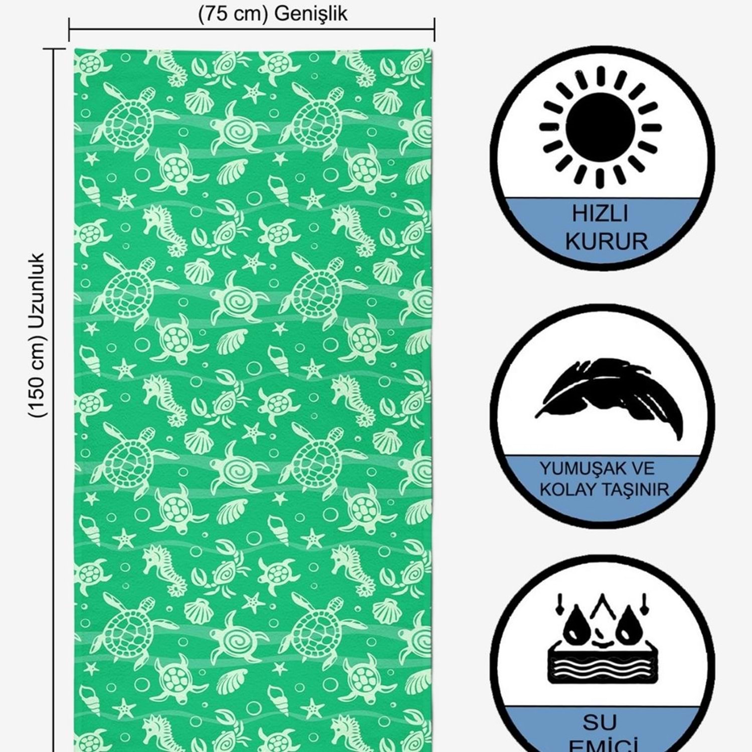 Underwater Desen Dijital Baskılı 75x150 Cm Plaj Havlusu YEŞİL