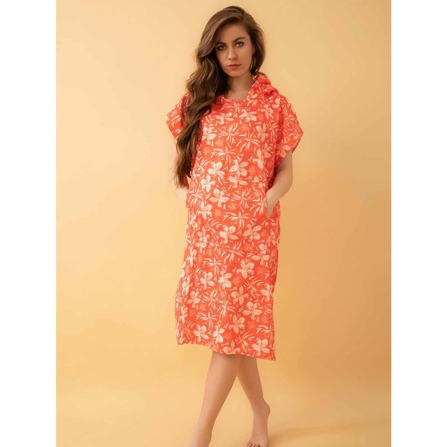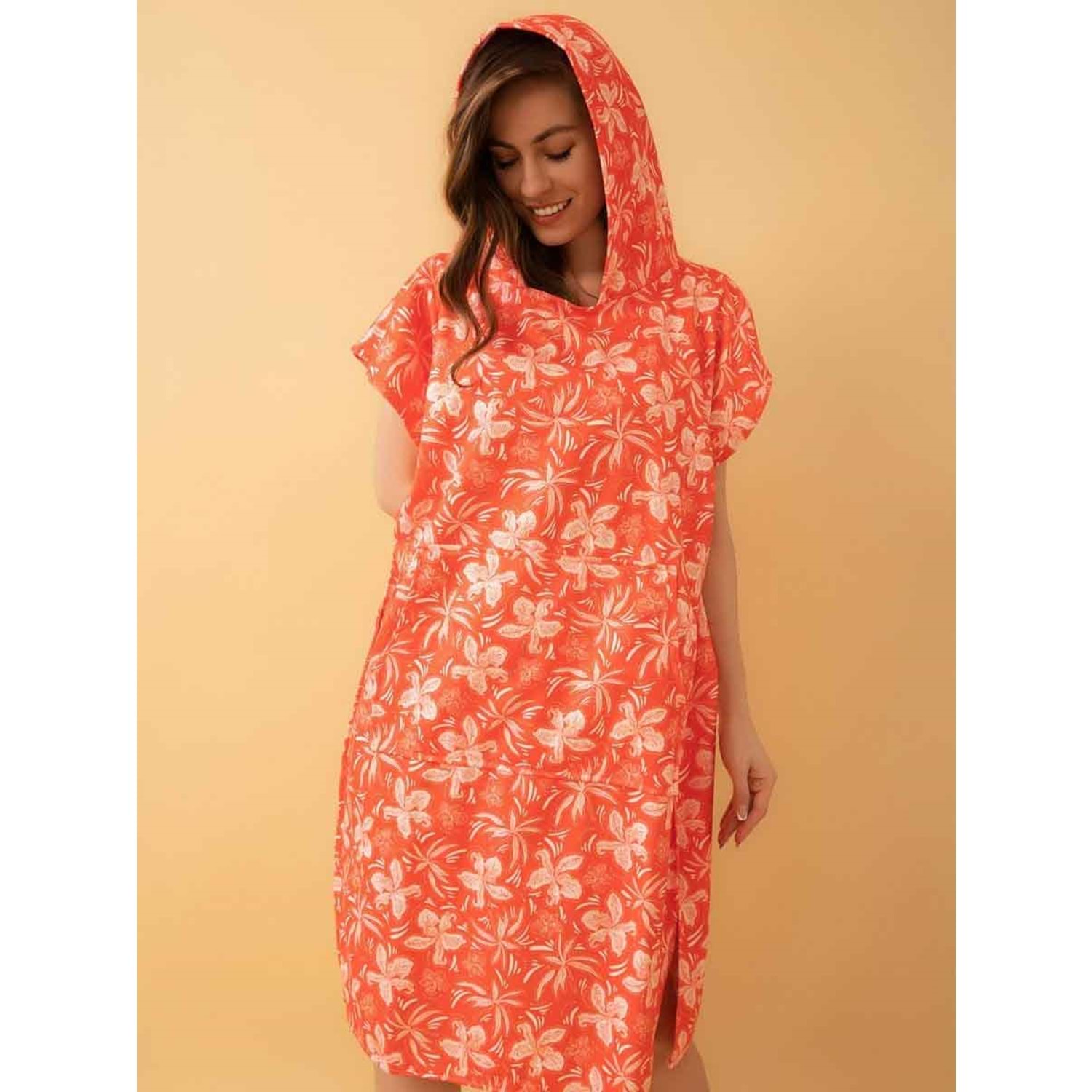 Flower Desen Yetişkin Sörf Yazlık Panço Kapüşonlu Plaj Havlusu Plaj Elbisesi S-M Beden